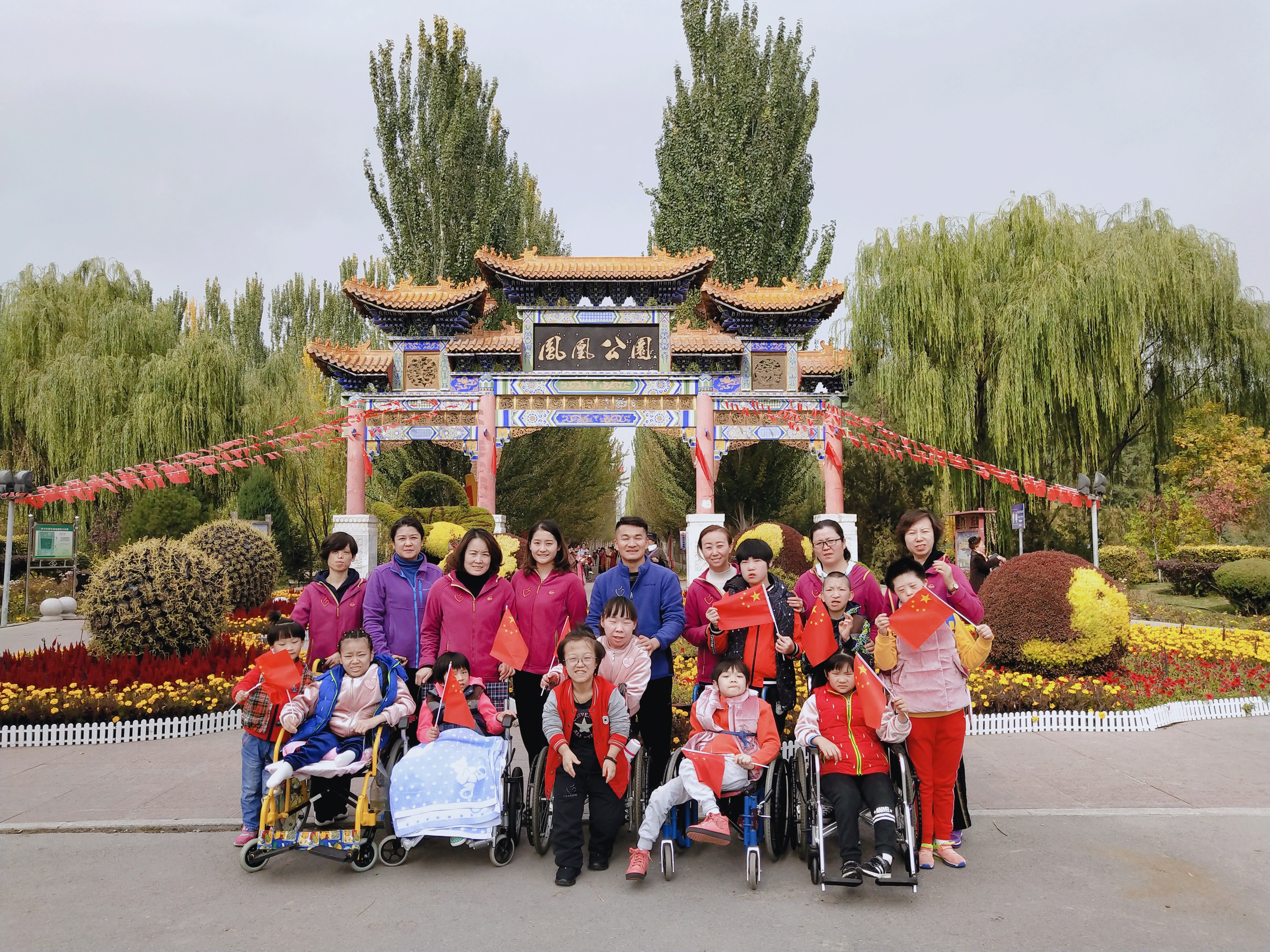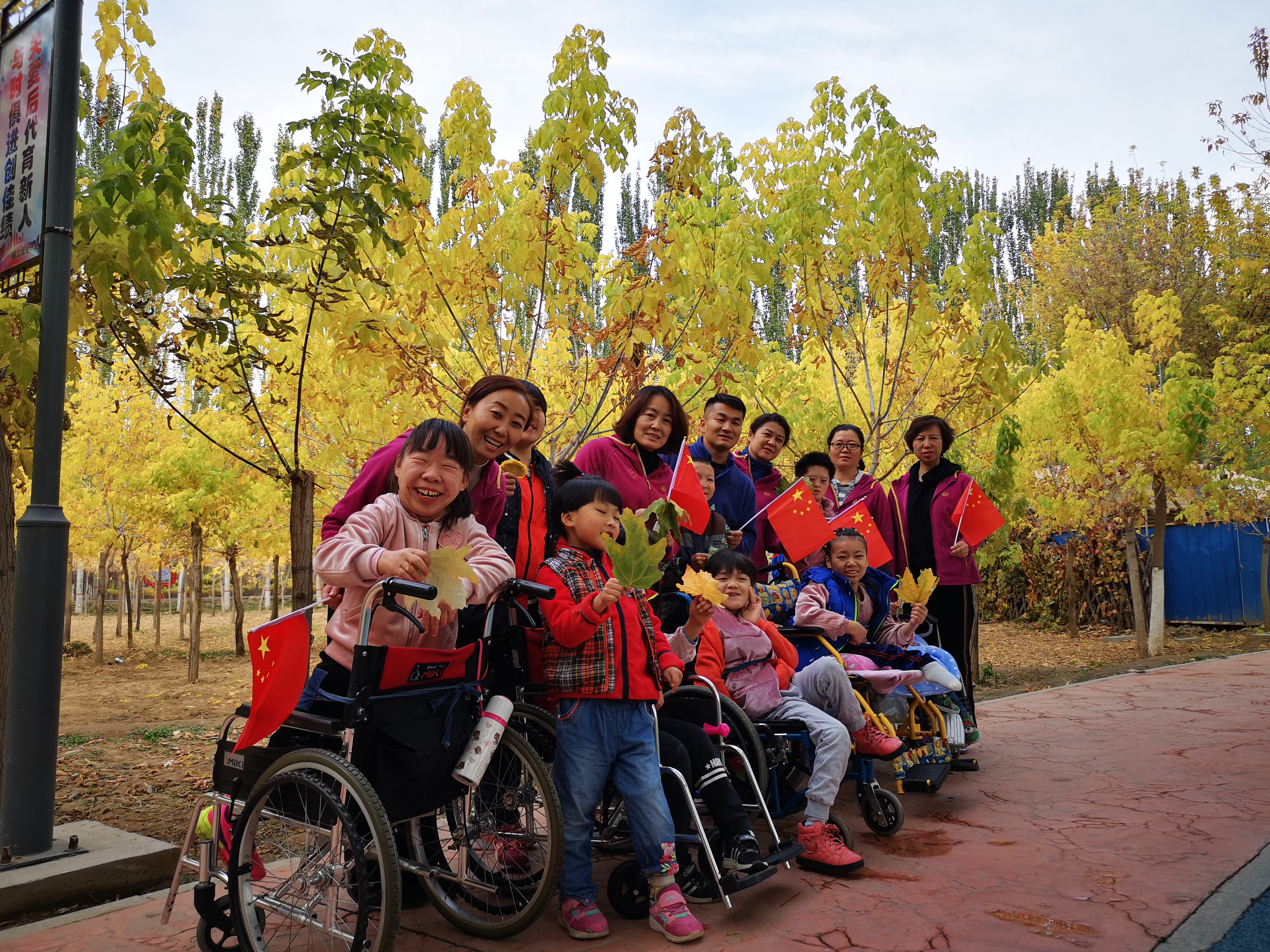 金秋十月,是最适合户外活动的时节,银川凤凰公园变成了色彩斑斓的海洋,为市民搭建人性化休闲娱乐平台,作为大型景观绿化园区,是我们宁夏的骄傲。我院儿童由于身体原因,外出机会很少,极大地限制了孩子们社会适应能力的发展和审美能力的培养,特别是中重度残障儿童。所以,游览凤凰公园既符合儿童的现实需要,又利于其长远发展,有助于扩展儿童的生活经验和视野。