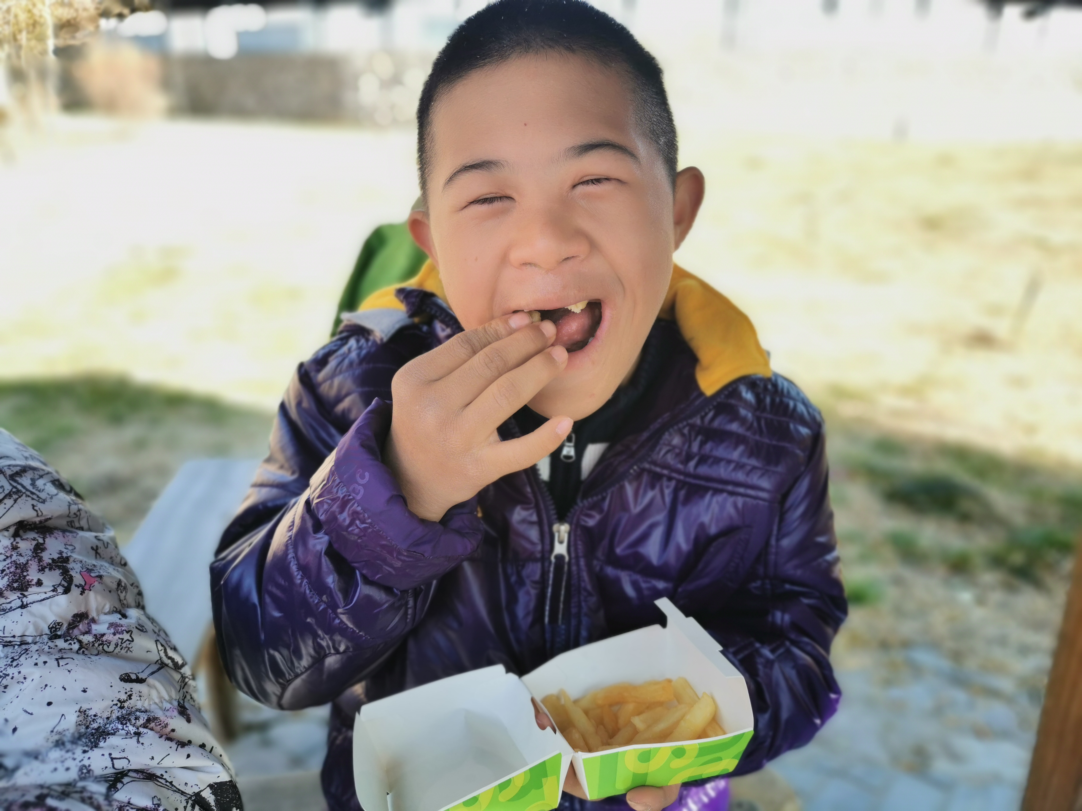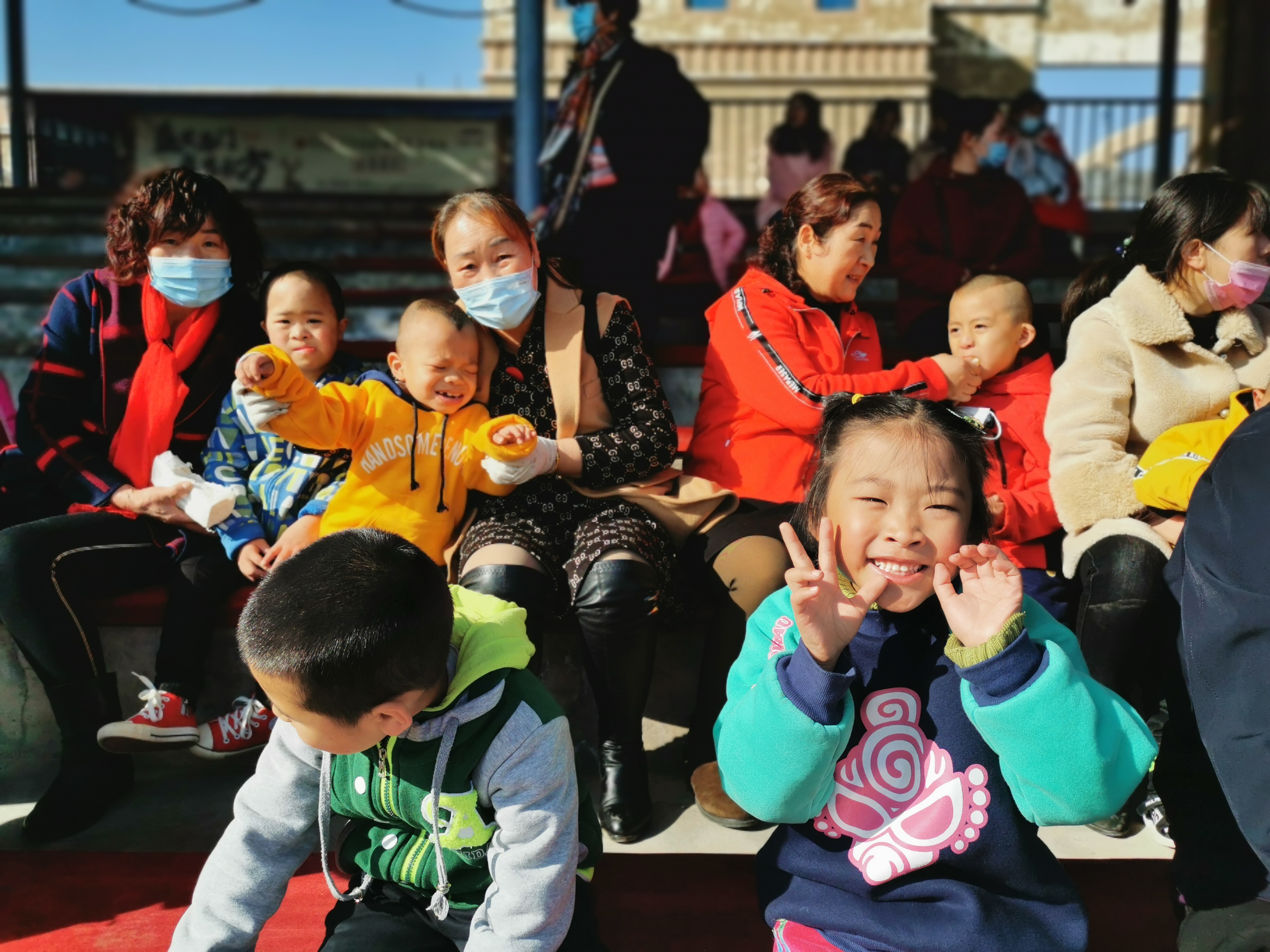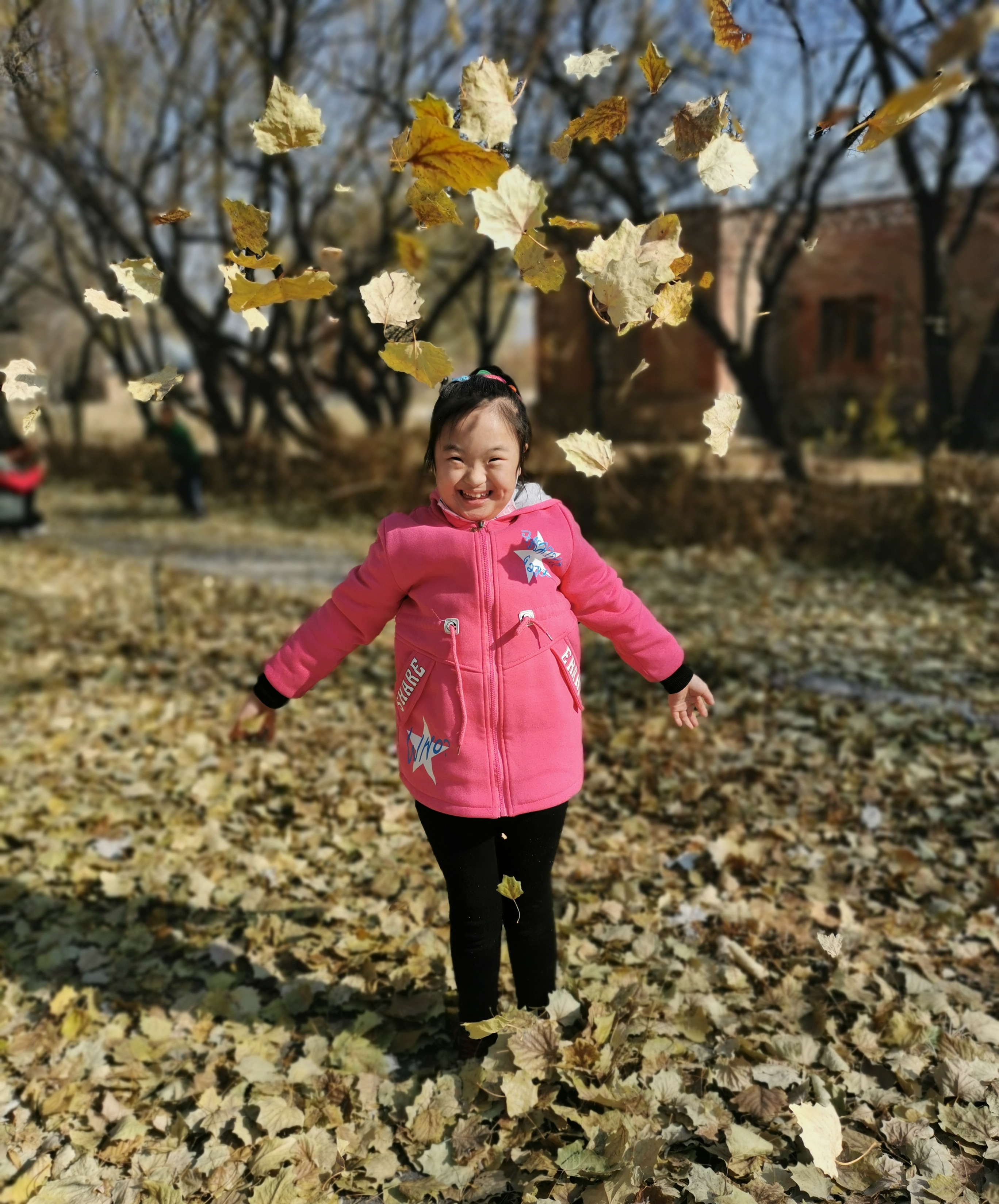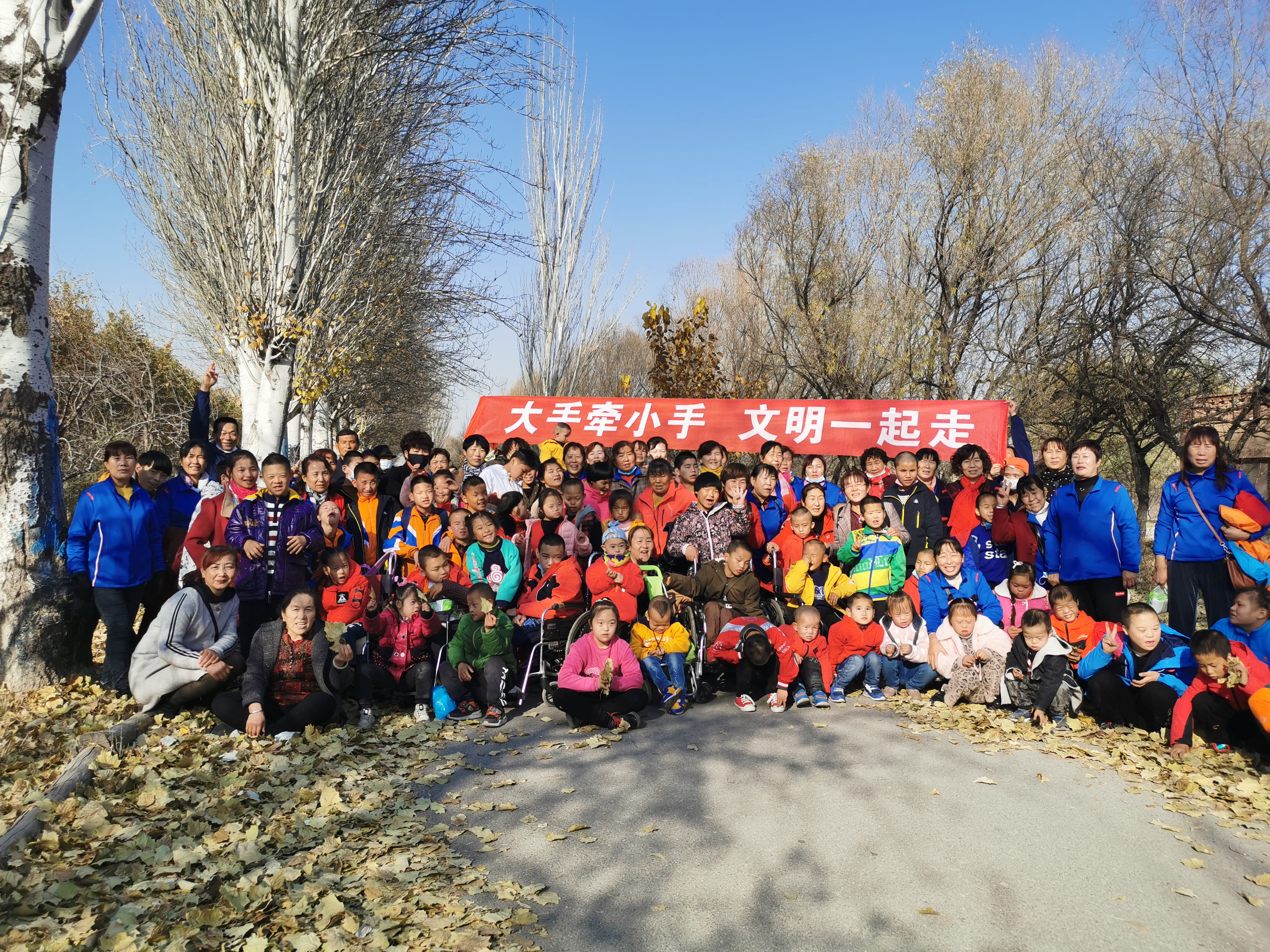 初冬的阳光明媚,天空湛蓝,在妈妈和老师的陪伴下,孩子们踩着满地的落叶,欢呼雀跃、自由奔跑,孩子们的天性得到了释放,每一个人的脸上都洋溢着开心的笑容。
