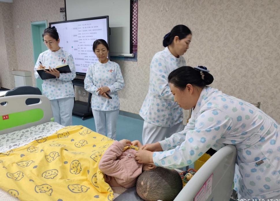 近日,宁夏儿童福利院成功开展首次由护理团队主导的教学查房,以专业实践推动重症孤残儿童照护水平迈上新台阶。本次查房以罹患“脊髓脊膜膨出瘤”伴发多系统并发症的重症患儿为案例,严格遵循医务部新制定的《护理查房制度》,系统构建标准化流程与评分体系,实现从病例准备到资料归档全流程规范化管理。通过全面采用电子化记录方式,建立完整护理档案体系,标志着我院护理工作正式迈向循证护理新阶段。