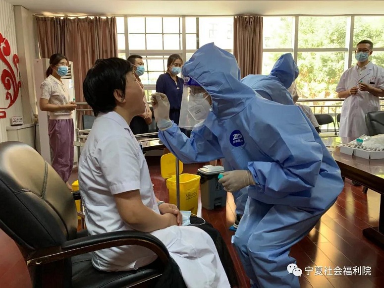 与疫情竞速,与时间赛跑。疫情发生后,宁夏社会福利院迅速启动新冠肺炎疫情防控预案、紧急措施,周密部署疫情防控工作措施,把坚决落实防控责任作为重中之重抓紧抓实,全面保障患者及干部职工健康安全。8月2日,完成全体干部职工、家属、第三方人员全面信息排查,组织全体干部职工进行核酸检测采样,对重点人员进行摸排管理,坚决落实关于疫情防控的各项措施。截至目前,宁夏社会福利院273名干部职工已完成全部核酸检测工作。