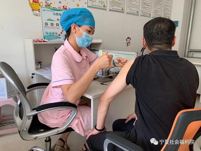 为加快推进新冠病毒疫苗接种工作进度,全力构建免疫屏障,尽早实现群体免疫,宁夏社会福利院高度重视此次新冠肺炎疫苗接种工作。今年3月份以来,宁夏社会福利院积极行动,通过5个月的动员宣传监督,分11个批次进行全员疫苗接种,截止目前为止,全院计划接种289人,除禁忌症人员外,259人已完成新冠疫苗接种,接种率已达90%。