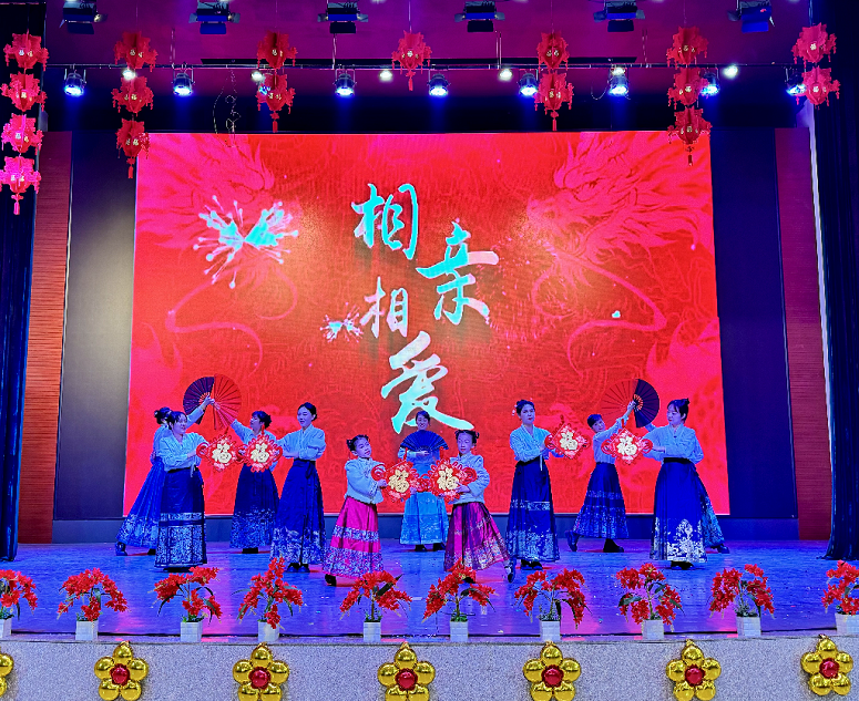 在一片喜悦激昂的氛围中,现代舞《相亲相爱》将现场氛围推向高潮,新春联欢会圆满落幕。