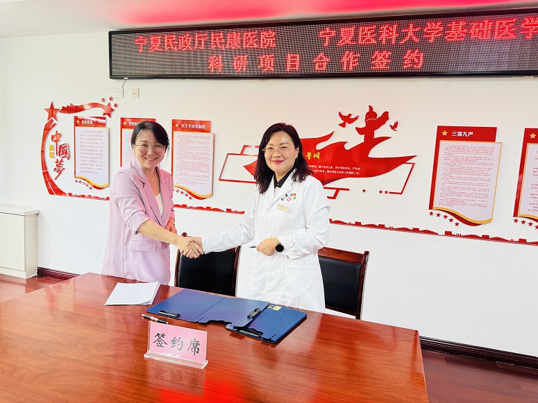 6月7日,宁夏民政厅民康医院与宁夏医科大学基础医学院医学遗传学与细胞生物学系签署了国家自然科学基金项目《利手与大脑半球不对称发育相关基因多态性的关联性研究》合作协议,双方表示将共同推进利手与精神分裂症易感关联的基础研究。会上,双方与会人员积极探讨了学科建设、资源共享、对接需求等合作细节,并一致决定不断深化项目合作、丰富项目内涵,共同致力于科技成果的临床转化与应用,为临床诊疗提供更多、更好的选择,切实造福广大精神障碍患者。
