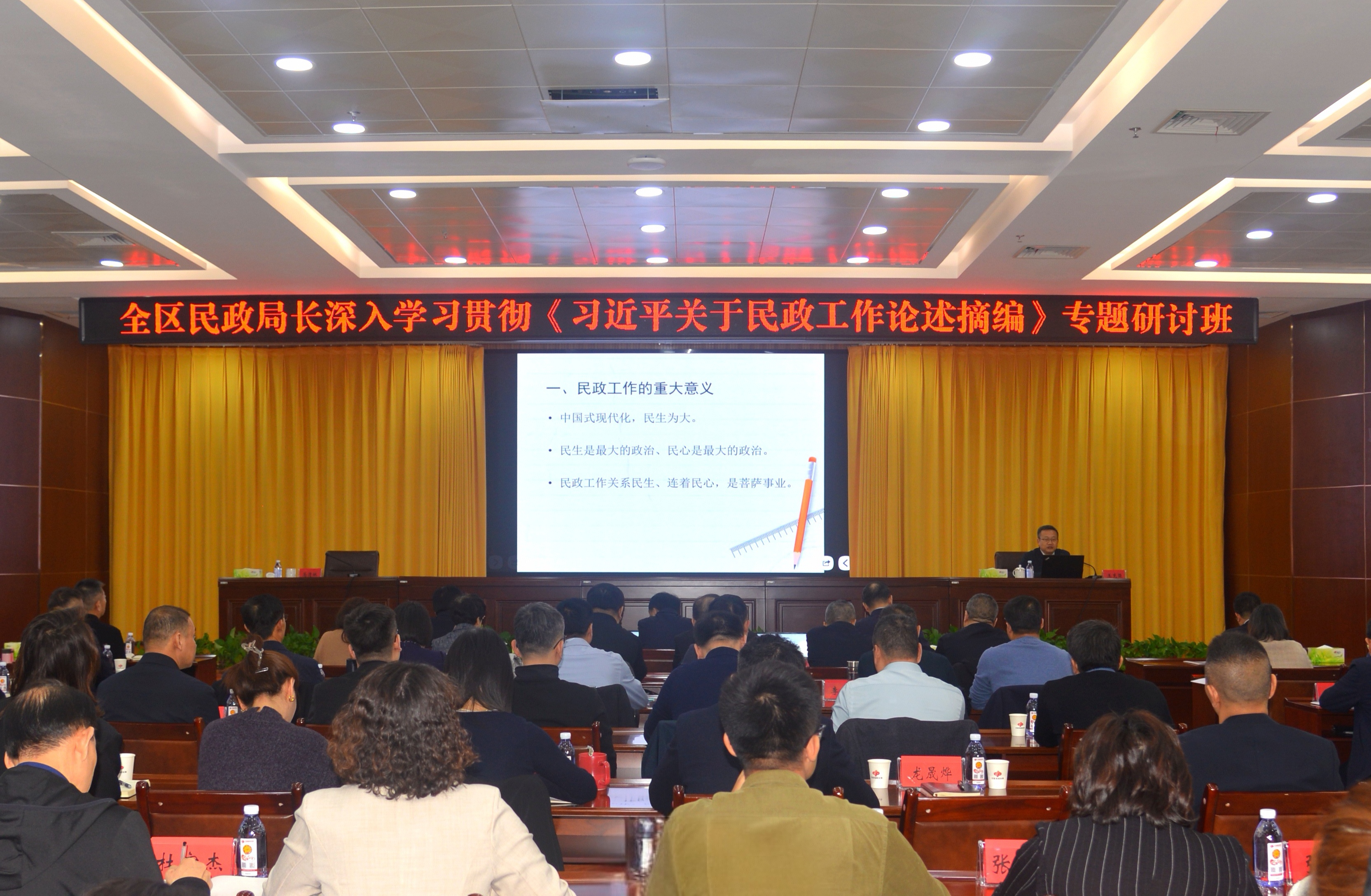 研讨班强调,全区民政系统要准确把握习近平总书记关于民政工作重要论述的科学内涵,牢牢把握民政工作关系民生、连着民心的根本立场和基本属性,牢牢把握加强普惠性、基础性、兜底性民生建设的方向定位,牢牢把握着力推进实施积极应对人口老龄化国家战略的职责使命,牢牢把握着力提升社会救助、社会福利、社会事务、社会治理工作水平的重要任务,牢牢把握深化民政事业发展的动力源泉,牢牢把握加强民政文化建设的内在要求,善于运用习近平总书记关于民政工作重要论述中蕴含的科学方法论,不断增强做好新时代新征程民政工作的能力和本领。